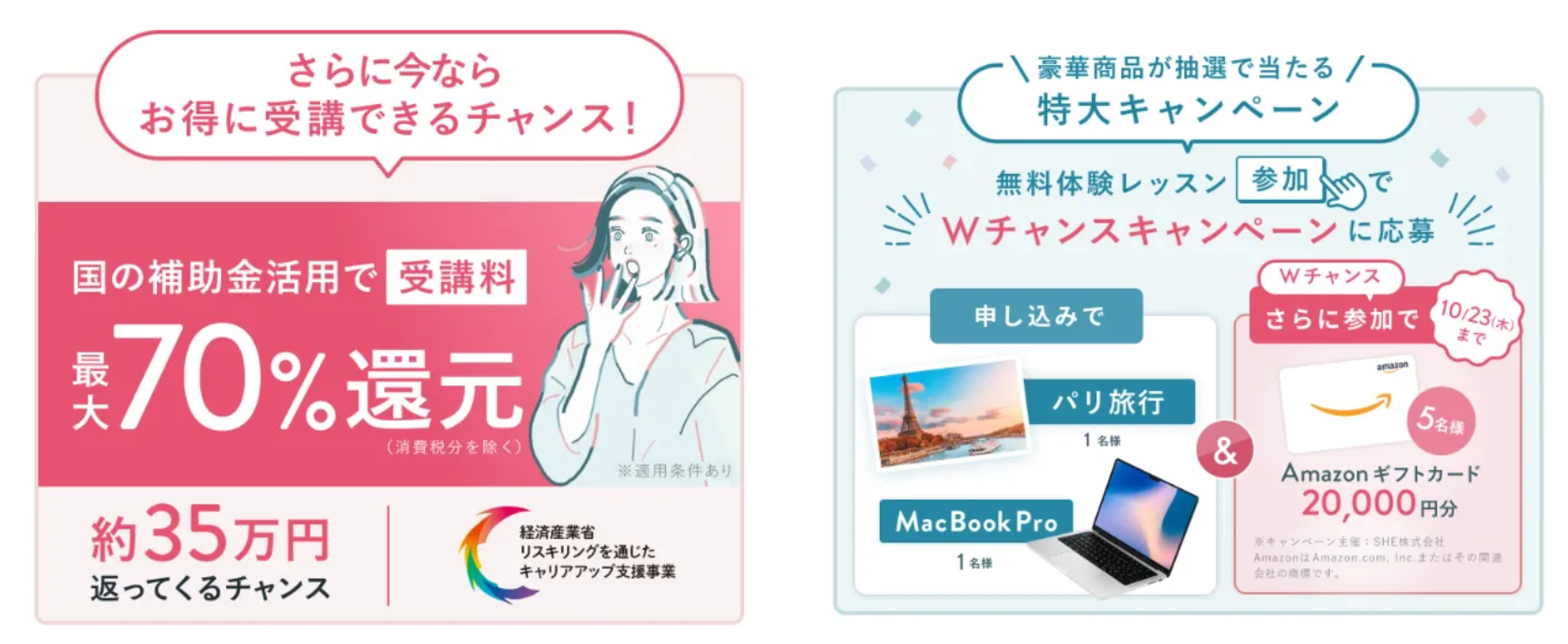 無料体験レッスンに参加すると、さまざまなキャンペーン割引がうけられることがあります。